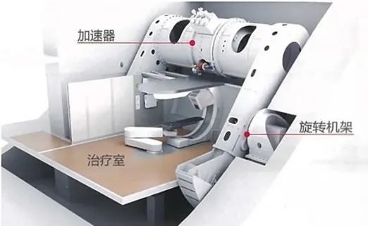 是RefleXion Medical在2020年推出的扇形束CT+直线加速器,是首款将高质量计算机断层扫描(CT)成像(扇形束CT)与直线加速器相结合的放疗设备。设备为滑环机架结构,在机架中也搭载了6MV加速器、16层扇形束CT、PET探测器、MV电压探测器,RefleXion 将PET的使用从逐渐的图像形成转变为瞬时发射检测,PET探测器会检测到光子的来源,并沿着这条直线立即发送辐射束,对检测到的PET信号进行实时放疗就是BgRT的基本原则。RefleXion具备两大类功能一是图像引导放射治疗(IGRT),二是生物引导放射治疗(BgRT)。