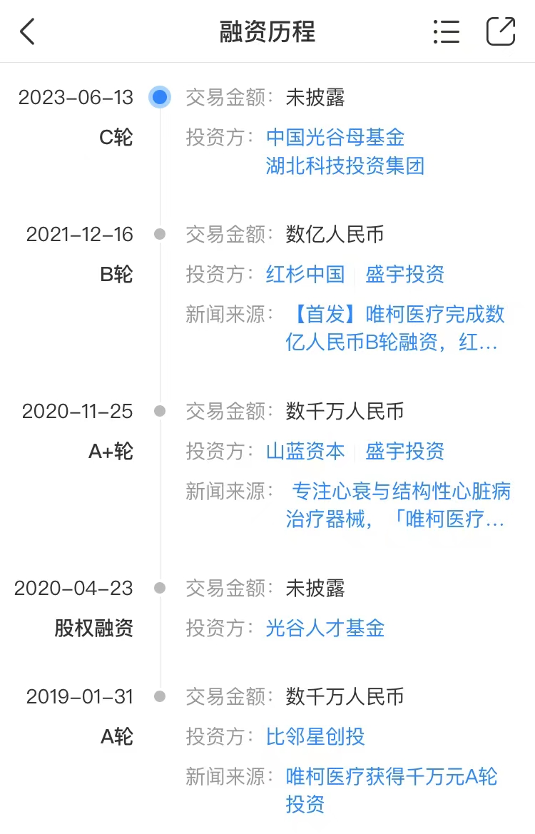 武汉唯柯医疗科技有限公司(简称“唯柯医疗”)于2018年7月武汉光谷注册成立,是一家专注于心脑血管疾病,尤其是心衰及结构性心脏病微创介入领域的创新型研发企业,该公司致力于打造心脑血管疾病治疗的综合性一体化平台。目前在苏州、北京、上海等地设立分公司。该公司自成立以来有多款产品进入创新医疗器械审查“绿色通道”。在长城战略咨询发布《2022年中国潜在独角兽企业研究报告》中,武汉唯柯医疗被视作是“中国潜在独角兽企业”。