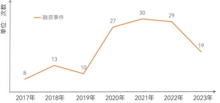 同时,仅从2023 年最新融资轮次的金额看,截至 2023 年 10 月 15 日, 已有 5 笔融资 过亿元。当然,就融资数量来看, 2023 年有所回落, 资本更趋于理性 。另外,从最新 融资轮次看,在 A 轮以上的占比 ,A 轮及以下的占比 33.3% ,表明市场充满活力。具 体来看, 近年的融资情况如下: