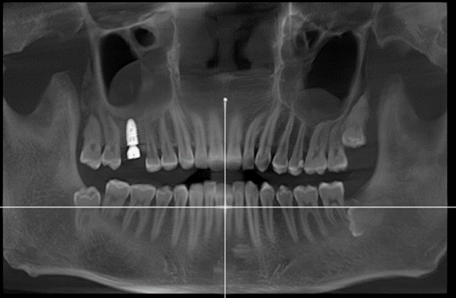 全景片:下图是已经植入种植体装了基台,还没有戴牙冠